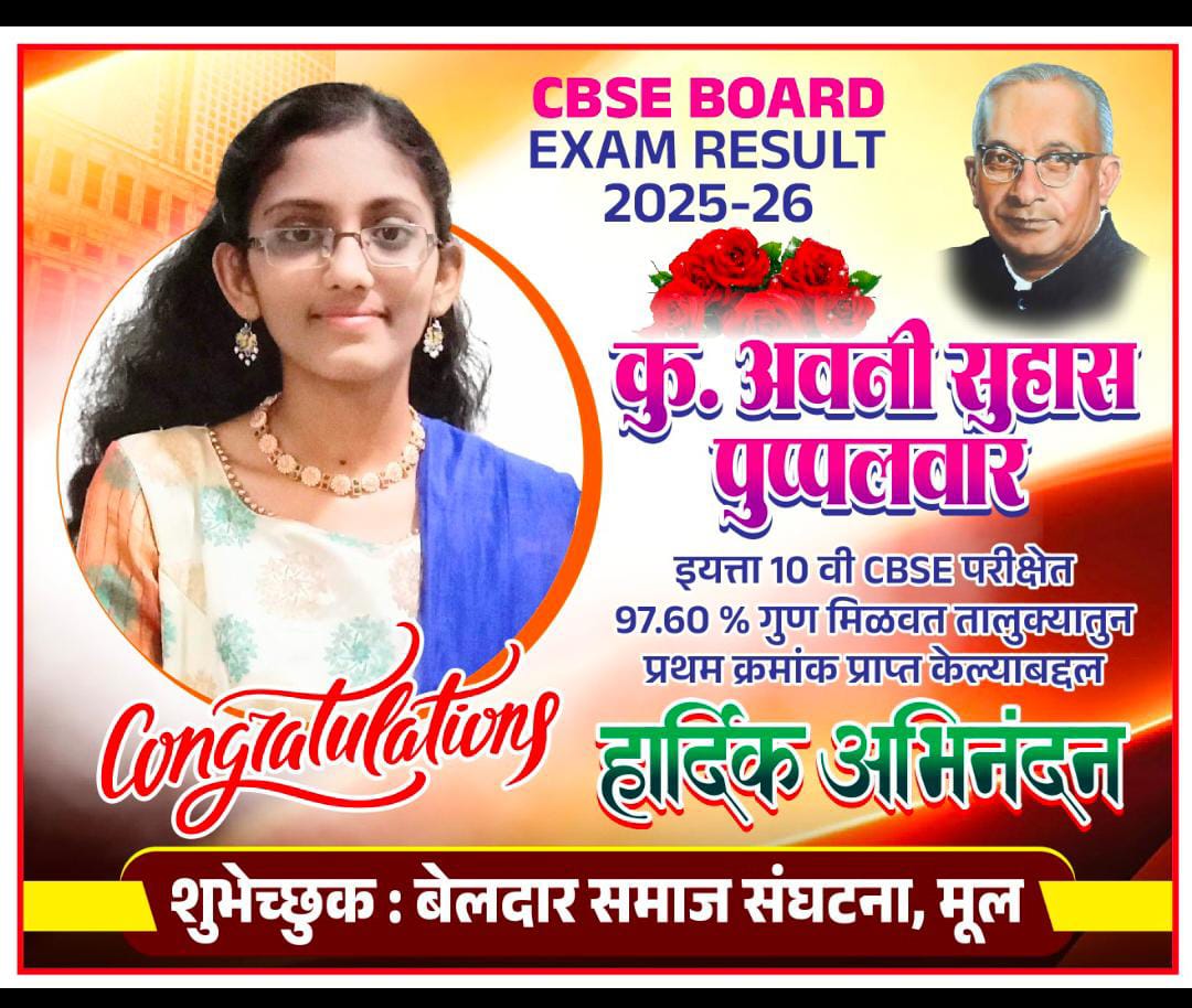 बेलदार समाजातील या कन्येने मिळवलेल्या या यशाबद्दल संपूर्ण परिसरातून तिचे कौतुक होत आहे. अत्यंत चिकाटीने आणि नियोजित अभ्यासाच्या जोरावर तिने हे यश संपादन केले असून, तिच्या या कामगिरीमुळे पप्पलवार परिवारासह बेलदार समाजात आनंदाचे वातावरण आहे.